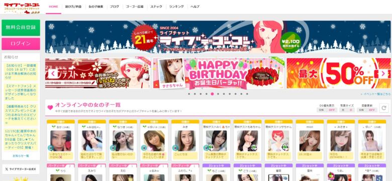 ライブでゴーゴーは、20年以上にわたり運営が続いている実績あるライブチャットサービスで、現在は株式会社ハイスペックが管理・運営を行っています。
